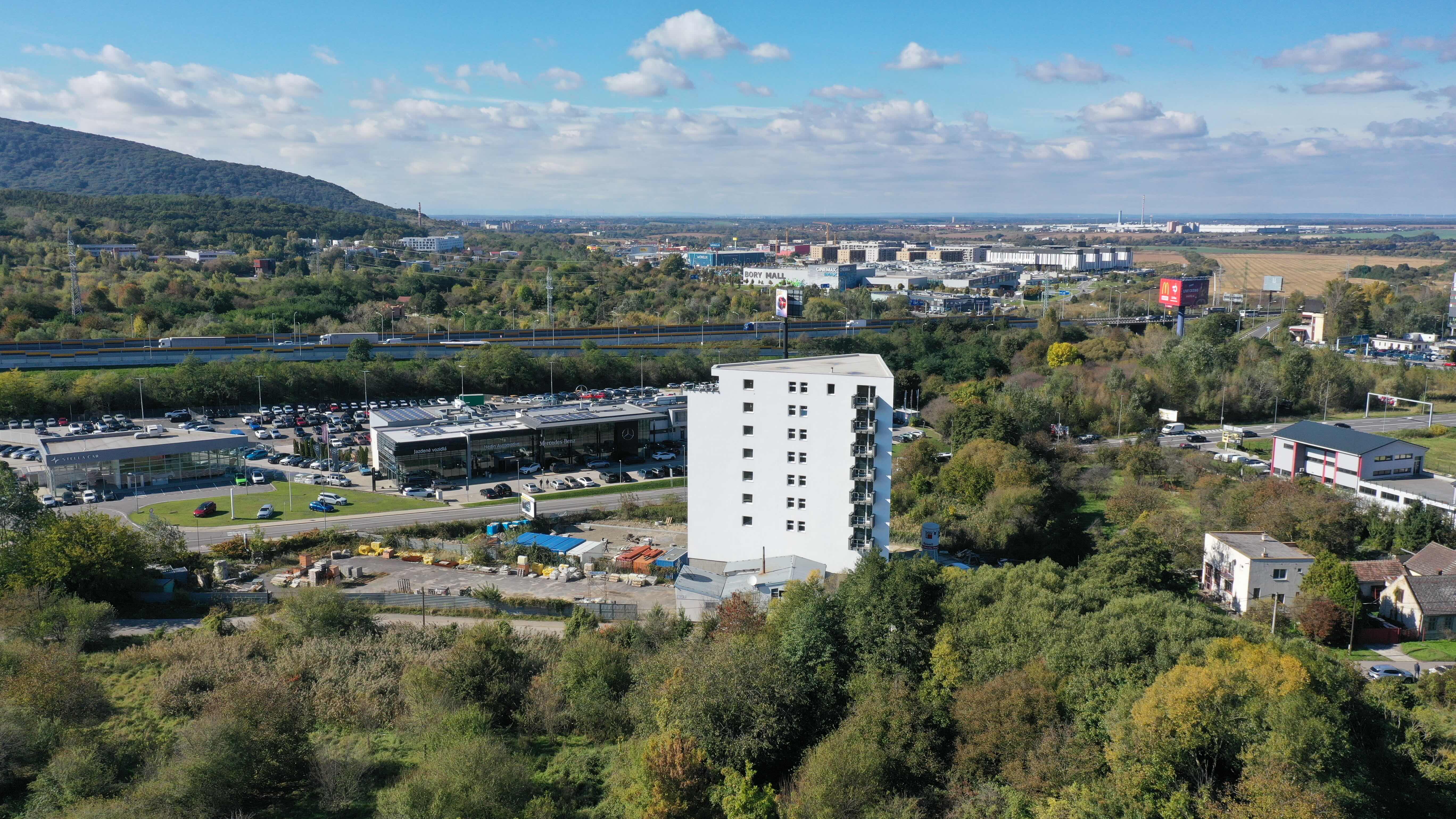 Kompletná občianska vybavenosť je na dosah - len 5 minút vzdialené nákupné centrum Bory Mall poskytuje všetky služby, zábavu či relax. V blízkosti bytového domu sa nachádza hokejový a futbalový štadión, školy, škôlky, Lidl a množstvo obchodov s rozličným tovarom.